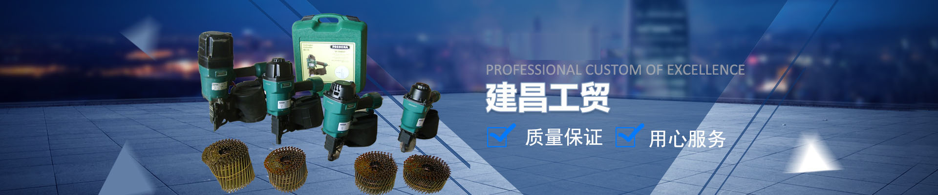 太倉建昌工貿(mào)有限公司是一家生產(chǎn)自營品牌"羿箭"各類工業(yè)用釘?shù)膶I(yè)公司,并且代理銷售眾多知名品牌的氣動(dòng)五金緊固工具(總代理德國PREBENA、代理 德國BeA...
